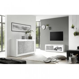 PACK COMPUESTO POR:• BASE TV BASICCOLOR: BLANCO/BETONMEDIDAS: L 140 x H 56 x D 43 cm• APARADOR 3 PUERTAS BASICCOLOR: BLANCO/BETONMEDIDAS: L 160 x H 86 x D 43 cm*LUZ LED NO INCLUIDO