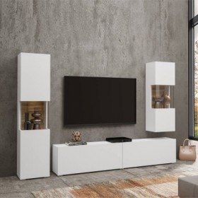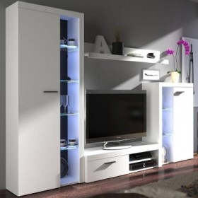 • ESTRUCTURA EN MADERA LAMINADA.• MUEBLE DE SALÓN COMPUESTO POR 4 ELEMENTOS.• COLOR: BLANCO/BLANCO BRILLO.• COMPARTIMENTOS DE ALMACENAMIENTO.• DISEÑO MODERNO Y ELEGANTE.• LUZ LED INCLUIDA.