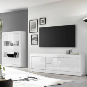 • MUEBLE DE SALÓN COMPUESTO POR 2 ELEMENTOS.• ACABADO LACADO.• COLOR: BLANCO.• DISEÑO CLÁSICO Y ELEGANTE.• LUZ LED NO INCLUIDO.