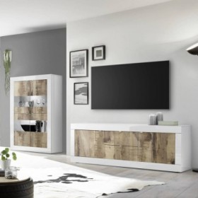 • MUEBLE DE SALÓN COMPUESTO POR 2 ELEMENTOS.• ACABADO LACADO.• COLOR: BLANCO/PERO.• DISEÑO CLÁSICO Y ELEGANTE.• LUZ LED NO INCLUIDO
