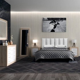 PACK COMPOSTO POR:• ESTRUTURA CAMA ENIGMA XL 200x160cmCOR: AZAHAR OO (PELE SINTÉTICA BRANCA)ALTURA DA CABECEIRA: 120cmLARGURA DA CABECEIRA: 336cm• ESTRADO METÁLICO COM RIPAS DE MADEIRA.• 2 MESAS DE CABECEIRA SARACOR: CAMBRIA/BRANCOMEDIDAS: L 50 x A 60 x P 35cm• OPCIONAL: SISTEMA ELEVATÓRIO + FUNDOS DE MADEIRA• OPCIONAL: COLCHÃO AMAZÔNIA 200x160cm.Colchão Núcleo D-37 Visco Natur.Anatómico e Ortopédico.Antialérgico e Antiácaros.Acolchoado de Alta Resistência.Laterais Reforçadas.Faixa Transpirável.Tecido Stretch Aloé Vera.Altura: +/- 17cm.O Núcleo D-37 Visco Natur é uma mistura de fibras de diferentes densidades, incluindo fibras visco elásticas.O seu tecido exterior, os seus tratamentos antiácaros e antialérgicos, e a sua embalagem em vácuo completam um colchão ideal para os que estão conscientes da sua saúde.Alta firmeza e um perfeito suporte para manter o alinhamento da coluna vertebral: assim é o modelo Amazônia, um colchão ortopédico, anatómico e de alta qualidade.• OPCIONAL: CÓMODA 4 GAVETAS SARACOR: CAMBRIA/BRANCOMEDIDAS: L 98 x A 82 x P 40cm• OPCIONAL: ROUPEIRO 2 PORTAS DE CORRER SARACOR: SONOMA/WHITEMEDIDAS: L 160 x A 215,5 x P 56,4cm