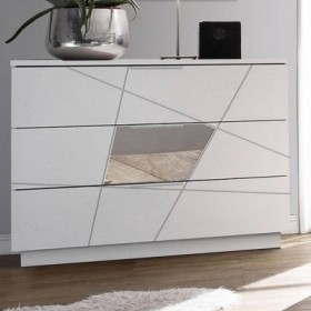 • ESTRUCTURA EN MADERA LAMINADA DE ALTA CALIDAD.• 3 CAJONES.• COLOR: BLANCO MATE/GRIS CLARO.• DISEÑO MODERNO.