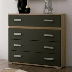• ESTRUCTURA EN MADERA LAMINADA.• ACABADO DE ALTA CALIDAD.• 4 CAJONES.• COLOR: CAMBRIA/GRAFITO.• DESIGN SOFISTICADO.