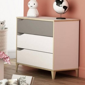 • ESTRUCTURA EN MADERA LAMINADA DE ALTA CALIDAD.• 3 CAJONES.• COLOR: ROSA/BLANCO.• ACABADO MATE.