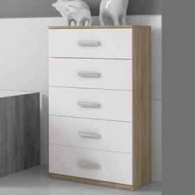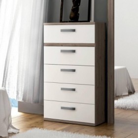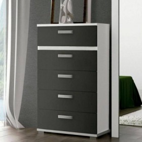 • ESTRUCTURA EN MADERA LAMINADA.• ACABADO DE ALTA CALIDAD.• BLANCO/GRAFITO.• 5 CAJONES.• DESIGN MODERNO.