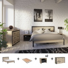 PACK COMPUESTO POR:• ESTRUCTURA CAMA COLORADO 200x160cmCOLOR: KRONBERG/SIDEWALK• SOMIER METÁLICO 200x160cm• 2 PATAS PARA SOMIER 26cm• 2 MESITAS DE NOCHE COLORADOCOLOR: KRONBERG/SIDEWALKMEDIDAS: L 49,6 x P 36,3 x A 40,1cm• CÓMODA 6 CAJONES COLORADOCOLOR: KRONBERG/SIDEWALKMEDIDAS: L 129 x A 77 x P 41,8cm *INDICADO PARA COLCHÓN EN LA MEDIDA 200x160cm.