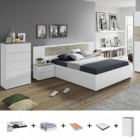 Pack Dormitorio Completo Aikos c/ Sinfonier (Blanco Artic/Roble Alaska) + Somier + Colchón Premium 17HR (190x150cm)