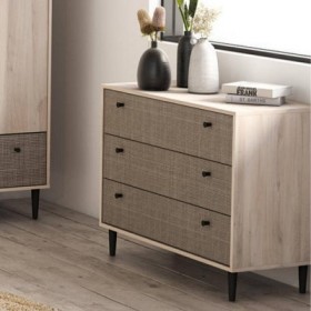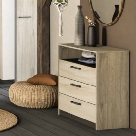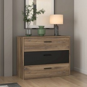 • ESTRUCTURA EN MADERA LAMINADA.• ACABADO DE ALTA CALIDADE.• 3 CAJONES.• COLOR: ANCONA/NEGRO.• DESIGN MINIMALISTA.