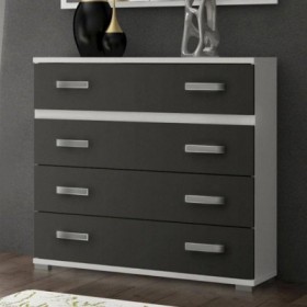 • ESTRUCTURA EN MADERA LAMINADA.• ACABADO DE ALTA CALIDAD.• 4 CAJONES.• COLOR: BLANCO/GRAFITO.• DESIGN ELEGANTE.
