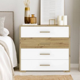 • ESTRUCTURA EN MADERA LAMINADA DE ALTA CALIDAD.• 4 CAJONES.• COLOR: OAK/BLANCO.• ACABADO MATE.