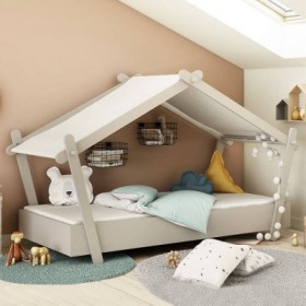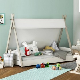 • ESTRUCTURA EM MDF.• COLOR: BLANCO/BEIGE.• ACOMPAÑA SOMIER.• DESIGN MODERNO Y DIVERTIDO, EN FORMA DE CABAÑA.• INDICADO PARA COLCHÓN EN LA MEDIDA 200x90cm.