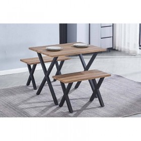 PAQUETE COMPUESTO POR:• MESA DE COCINA VIDELCOLOR: TAPA DE MADERA CON PATAS DE METAL NEGRO.MEDIDAS: Ancho 100 x Alto 76 x Fondo 70cm• 2 BANCOS DE VIDEL.COLOR: TAPA DE MADERA CON PATAS DE METAL NEGRO.MEDIDAS: Ancho 80 x Alto 45 x Fondo 35cm