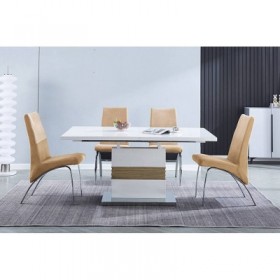 Pack Mesa de Comedor Extensible Carlota + 4 Sillas Aroa (Beige)