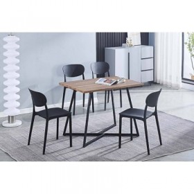 PAQUETE COMPUESTO POR:• MESA DE COMEDOR KIRBY.COLOR: TAPA DE MADERA CON PATAS NEGRAS.MEDIDAS: Ancho 100 x Alto 76 x Fondo 70cm• 4 SILLAS VIDELDE COLOR NEGRO.MEDIDAS: Ancho 40 x Alto 80 x Fondo 55cm