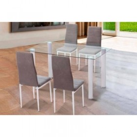 PACK COMPUESTO POR:• MESA DE COMEDOR EMICOLOR: TAPA EN VIDRIO TEMPLADO NEGRO CON PATAS EN METAL NEGRO.MEDIDAS: L 140 x A 90 x P 75cm• 6 SILLAS EMICOLOR: PIEL SINTÉTICA NEGRA CON PATAS EN METAL NEGRO.