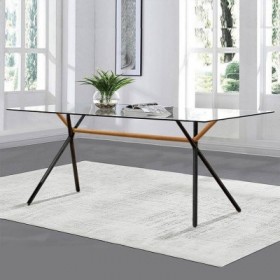 • TAPA DE CRISTAL TEMPLADO.• PATAS DE METAL NEGRO CON DETALLES DE MADERA.• FACIL MANTENIMIENTO.• PLAZAS DE MESA: 6-8 PERSONAS.• DISEÑO MODERNO.