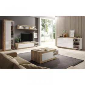 PAQUETE COMPUESTO POR:• VITRINA SINTRACOLOR: ROBLE SAMDAL/BLANCO BRILLOMEDIDAS: Ancho 67 x Alto 200 x Fondo 40cm• ELEMENTO DE ESTANTE SINTRACOLOR: ROBLE SAMDAL/BLANCO BRILLOMEDIDAS: Ancho 180 x Alto 28 x Fondo 22cm• BASE TV EXTENSIBLE SINTRACOLOR: ROBLE SAMDAL/BLANCO BRILLOMEDIDAS: ABIERTO: W 242 x H 43 x D 40cm CERRADO: Ancho 200 x Alto 43 x Fondo 40cm• APARADOR SINTRA 3 PUERTAS 180cmCOLOR: ROBLE SAMDAL/BLANCO BRILLOMEDIDAS: Ancho 180 x Alto 86 x Fondo 40cm• MESA DE CENTRO SINTRACOLOR: ROBLE SAMDAL/BLANCO BRILLOMEDIDAS: ABIERTO: AN 154 x AL 44 x P 60 cm CERRADO: Ancho 120 x Alto 44 x Fondo 60cm