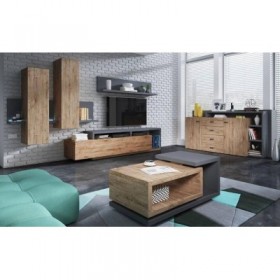 PACK COMPUESTO POR:• MUEBLE DE SALÓN COMPLETOCOLOR: ANTRACITE/RIBBEC OAKMEDIDAS: MUEBLE SUSPENDIDO CON ESTANTE: L 152 x P 35cmBASE DE TV: L 219 x H 52 x D 45 cmESTANTE: L 150 x H 32 x D 24 cm• APARADOR 2 PUERTAS + 4 CAJONES BOTACOLOR: ANTRACITE/RIBBEC OAKMEDIDAS: L 180 x H 98 x D 37 cm• MESA DE CENTRO BOTACOLOR: ANTRACITE/RIBBEC OAKMEDIDAS: L 120 x H 40 x D 60 cm• LUZ LED NO INCLUIDA.
