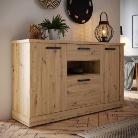 • ESTRUTURA EM MADEIRA LAMINADA DE ALTA QUALIDADE.• ACABAMENTO MATTE.• COR: ARTISAN OAK.• PERNAS EM METAL PRETO.• DESIGN ELEGANTE.