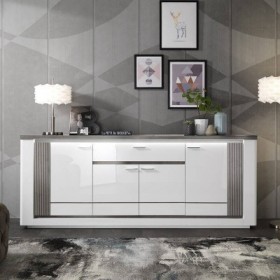 Aparador 3 Portas + 1 Gaveta Bellaria Lacada (c/ Luz LED)